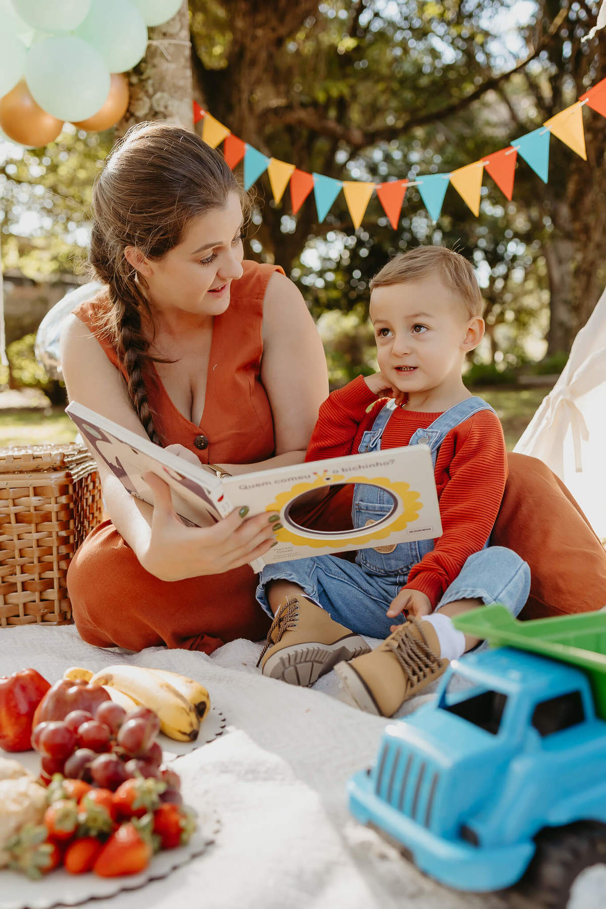 Para celebrar os 2 anos do Miguel decidimos fazer uma sessão externa, com direito a um saboroso piquenique, e com a interação com tudo aquilo que ele adora: livros, carrinhos e muita brincadeira!